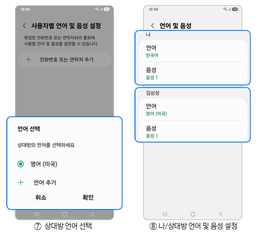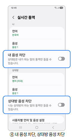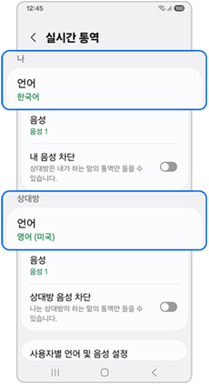 4단계) 상대방 언어와 내 언어 음성을 지정할 수 있습니다.
