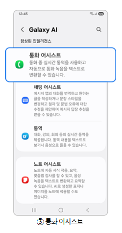 1단계) 삼성 전화 앱(통화연결)에서 통화 어시스트를 선택합니다.