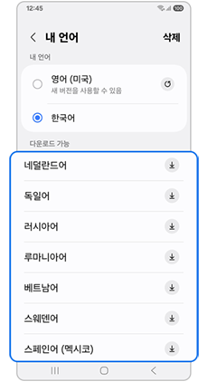 ※ 언어를 다운로드해야 하는 경우, 사용을 원하는 언어 옆에 있는 다운로드 아이콘을 선택해주세요. 다운로드가 완료되면 페이지 상단으로 이동하여 원하는 언어를 선택하세요.