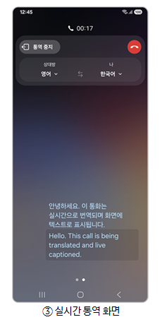 이런 불편함을 덜어주기 위해 삼성 갤럭시 스마트폰에는 'AI 통화 중 실시간 통역' 기능이 탑재되어 있어, 외국어로 진행되는 전화도 보다 편하게 응대할 수 있습니다. 이 기능은 통화 도중 상대방이 말하는 외국어를 실시간으로 번역해 보여주고, 사용자가 말한 내용을 다시 상대방 언어로 번역하여 들려주는 방식으로 작동합니다. 양방향 실시간 번역이 가능한 만큼, 외국어를 잘 몰라도 통화가 원활하게 이어질 수 있는 것이 가장 큰 장점입니다.