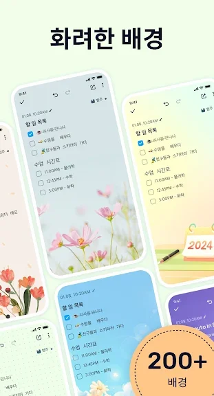 화려한 배경이 있는 스티커 메모위젯장 앱을 원하십니까?