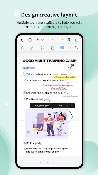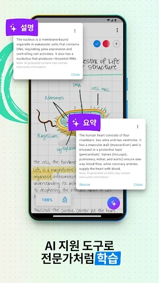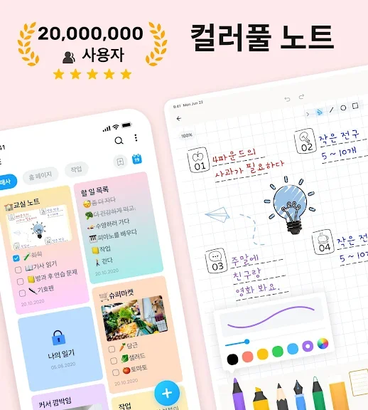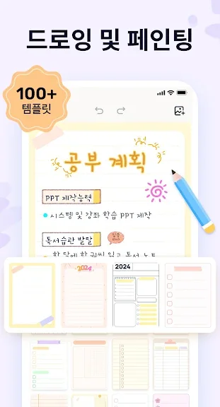 - 다양한 실감 나는 펜과 형광펜을 사용하여 아름다운 손글씨 노트를 작성하세요. 필기체에 미적인 터치를 추가할 수 있는 만년필을 사용해 보세요.