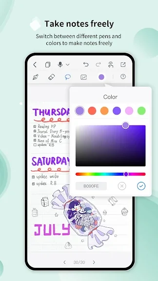 Huion Note에는 펜, 지우개, 라소 도구 등 다양한 편집 도구가 준비되어 있어 편리하게 수업 노트를 작성하고 메모도 빠르게 작성할 수 있으며 아름다운 다이어리를 만들 수 있습니다.