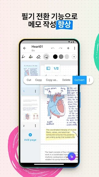 - 직관적인 제스처를 이용해서 끊김 없이 메모를 편집하고 서식 내용을 지정할 수 있습니다.