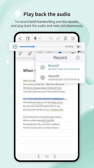 - 노트를 작성하면서 오디오를 녹음하고 중요한 내용을 놓치지 마세요 – 강의와 회의에 좋습니다!