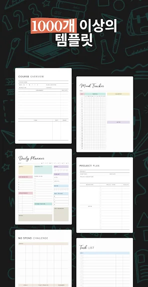 - Noteshelf 팀이 만든 200개 이상의 독점 템플릿 라이브러리에서 학습 계획서, 수업 노트, 건강 추적기, 불렛 저널 등 다양한 템플릿을 선택하세요.