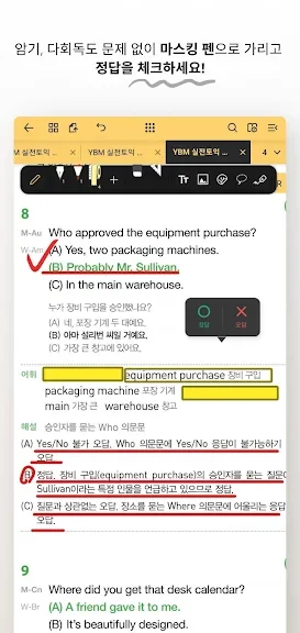 - 문제지와 해설지를 한 화면에 띄어 놓을 수 있어서 채점할 때 해설지를 넘겨 볼 필요가 없어요!