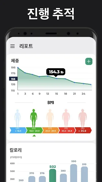 비만이거나 관절에 문제가 있는 사람들을 위한 충격이 적은 옵션 제공. 헬스장도 필요 없고, 장비도 필요 없습니다. 자신의 체중을 사용해 지방을 빼고 근육을 키우세요. 그래프로 태운 칼로리를 추적하고 체중 감량 진행을 확인할 수 있습니다.