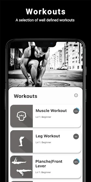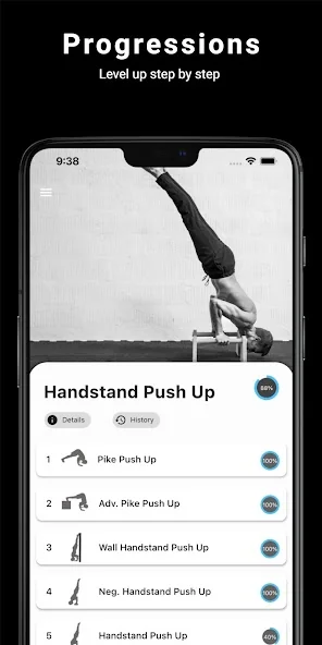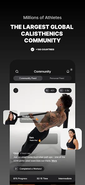 매일 맞춤형 운동 루틴, 전문가의 코칭이 포함된 트레이닝 프로그램, 그리고 머슬업, 핸드스탠드, 플란체와 같은 고급 스킬 튜토리얼로 새로운 레벨에 도전해보세요!