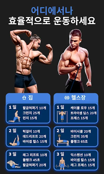 -무료 전신 운동, 가슴 운동, 다리 운동, 팔 운동, 뱃살 운동, 남성용 등 운동