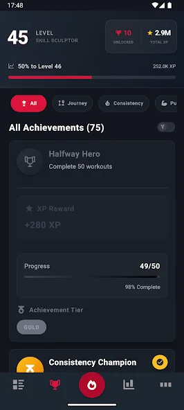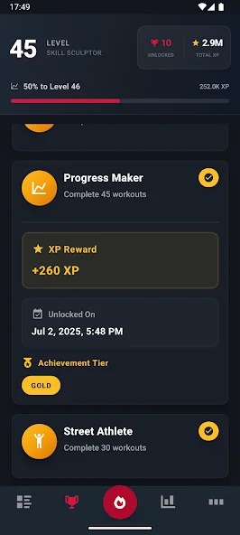 • 모든 운동으로 XP 획득 → 레벨업