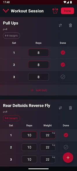 • 반복 횟수, 유지 시간, 중량 운동 상세 기록