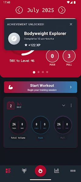 • 모든 운동으로 XP 획득 → 레벨업
