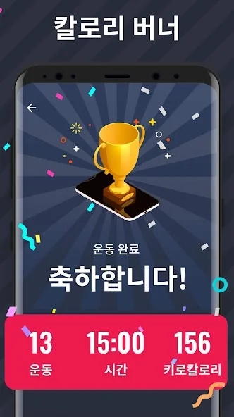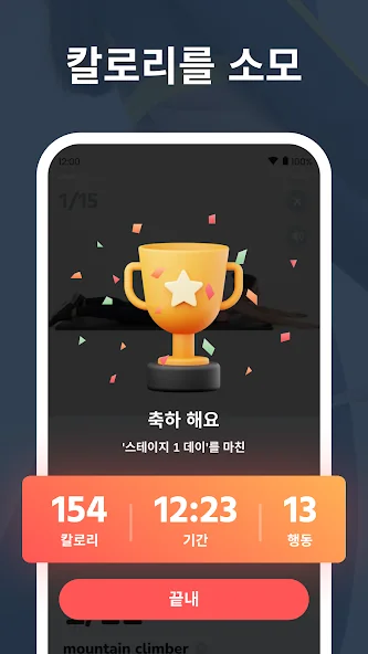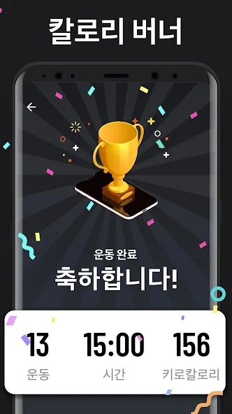 연소된 칼로리와 체중 감량 과정을 그래프로 확인할 수 있습니다. 헬스장에 갈 필요도, 장비도 필요 없어요. 그냥 체중을 이용하는 것만으로도 몸 전체를 탄력 있게 만들고 탄탄한 근육을 만들 수 있어요.