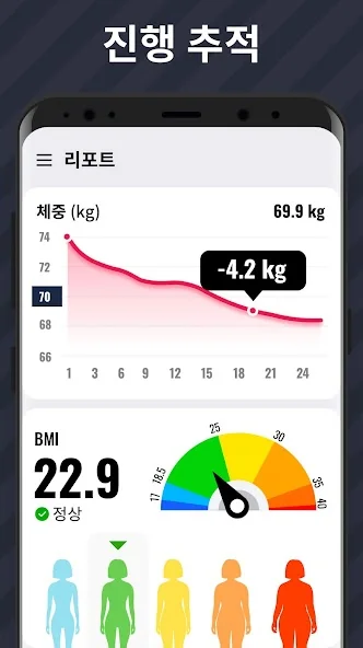 기구가 필요 없이 모든 운동은 집이나 원하는 모든 곳에서 언제든지 할 수 있습니다. 그래프로 체중 감소 진행 및 태운 칼로리를 추적할 수 있습니다. 30일 플랜을 따라 하루에 5-10분만 투자해 살을 빼고 건강해지세요!