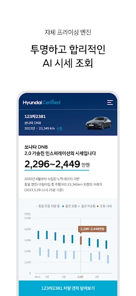 이 어플은 구글플레이스토어에서 "중고차 시세 조회"로 검색했을때 5번째로 나오는 어플입니다. 아래는 현대/제네시스 인증중고차 어플에 대한 자세한 설명이니 참고하세요.