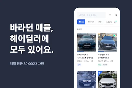 아래는 헤이딜러[딜러용] - 온라인 중고차 매입 어플에 대한 스크린샷 정보입니다.