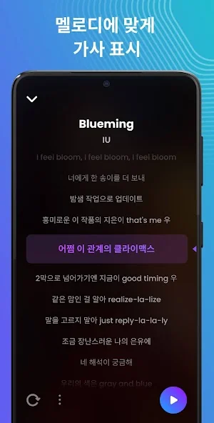 이렇게 강력하고 깔끔한 UI 덕분에, 앱을 사용하는 동안에도 자연스럽고 편안한 느낌이 듭니다. 음악 플레이어 앱으로 일상의 작은 행복을 더해보는 건 어떠세요?