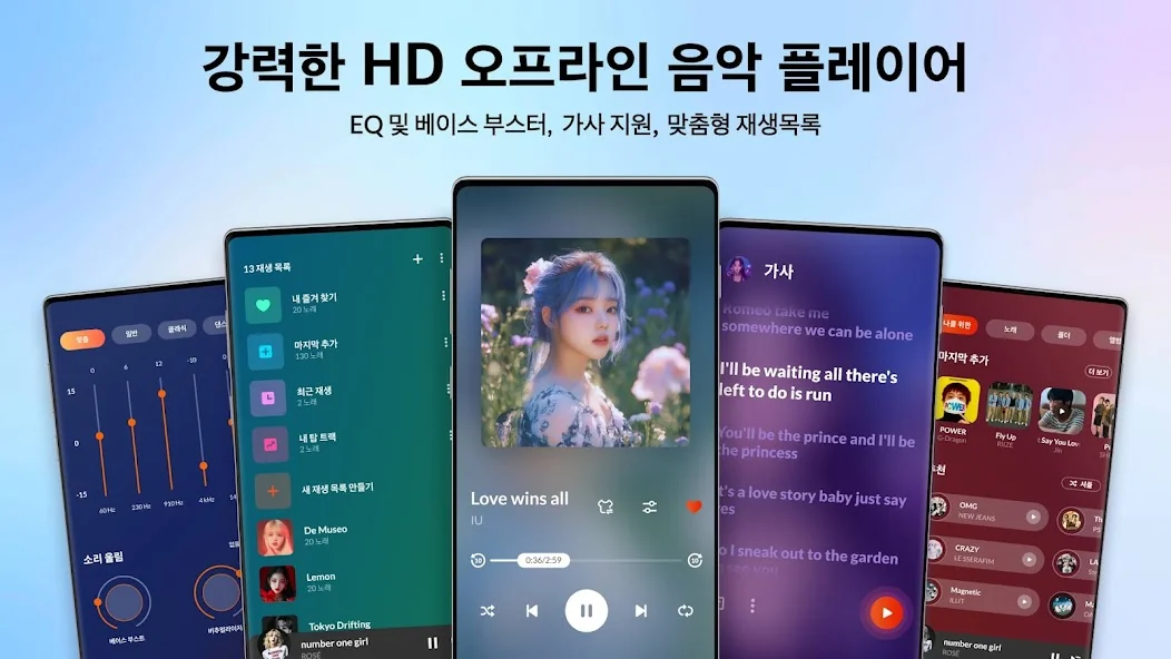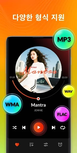 이 앱은 다양한 오프라인 음악 파일들을 한 곳에서 편하게 관리할 수 있어요. MP3뿐만 아니라 WAV, AAC, FLAC 등 여러 형식을 지원해서, 갖고 있는 음악 대부분을 별도로 변환하지 않고 바로 재생할 수 있답니다.