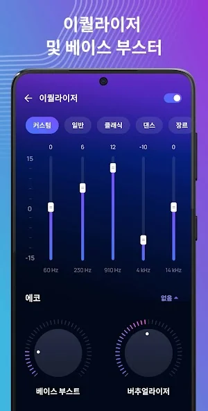 이 앱은 강력한 이퀄라이저와 사전 설정 모드를 제공해서, 음악을 들을 때 원하는 사운드로 쉽게 조절할 수 있어요. 좋아하는 음악 장르별로 설정을 바꾸거나, 베이스를 강화하는 것도 간단하게 할 수 있죠.