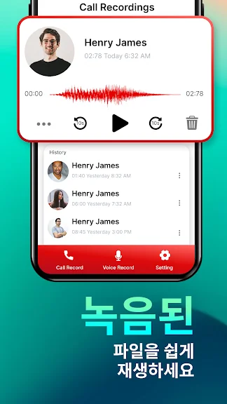 - 이 앱을 사용하면 선명한 음질로 전화 녹음을 받을 수 있습니다.