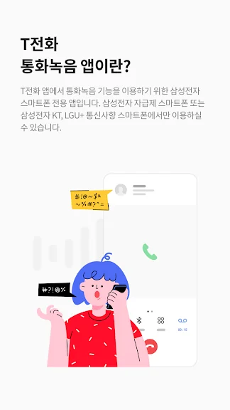T전화 통화녹음 - 삼성 스마트폰 전용 어플에 대한 스크린샷 정보가 필요하시다면 아래 이미지를 참고하시기 바랍니다.