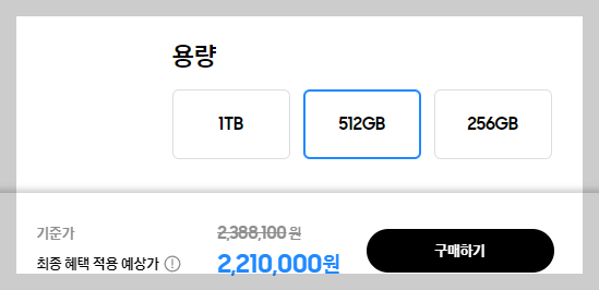 갤럭시 Z 폴드6 512GB 2,210,000원 (현재 삼성닷컴 할인적용가)
