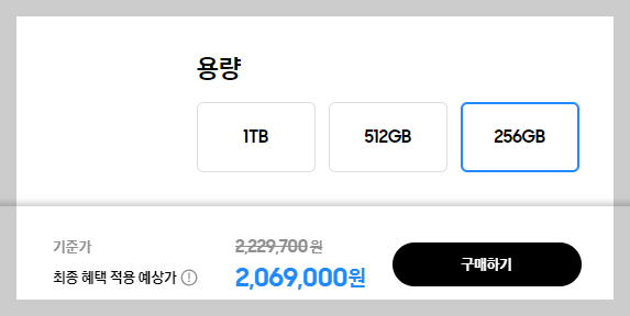 갤럭시 Z 폴드6 256GB 2,069,000원 (현재 삼성닷컴 할인적용가)